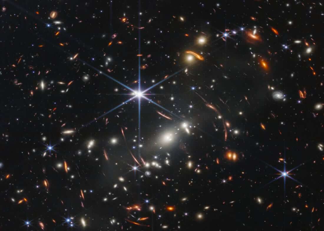 The picture is JWST’s first shot at what astronomers call a deep-field image—when the telescope takes a long look at a tiny patch of space, collecting dim light and revealing extremely distant objects. As seen through the instrument’s sharp, infrared eye, that little patch is populated by swirling, glowing galaxies, some of which existed more than 13 billion years ago, reports National Geographic.