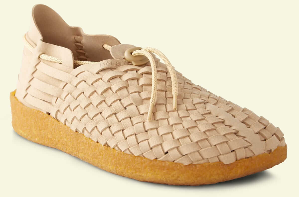 The Latigo huarache moccasin from Malibu is handwoven from vegan suede leather with a firm crepe rubber outsole. These are comfortable for daily wear and airy enough to keep your feet cool and dry.