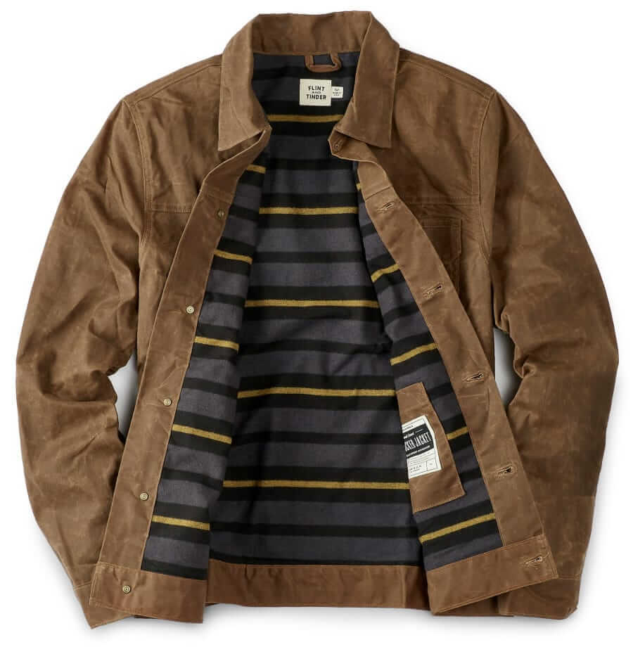 Flannel-lined waxed trucker jacket, |