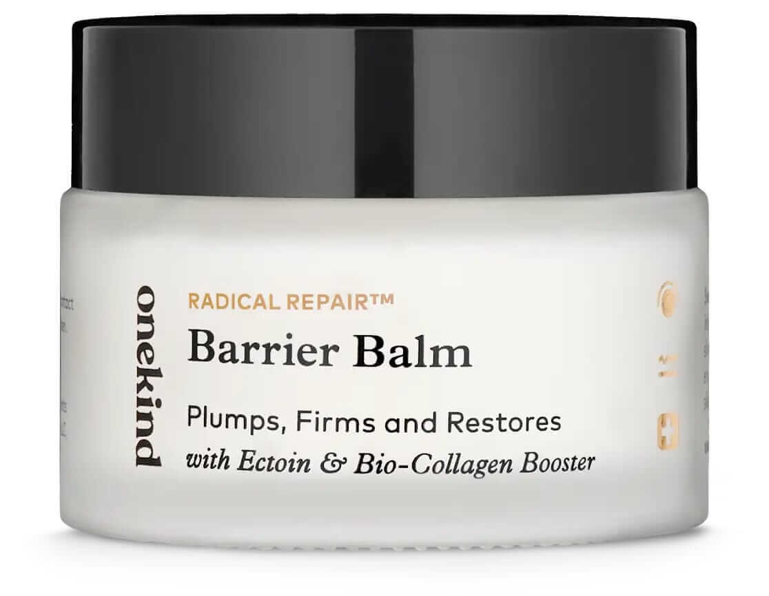 The Night Cream This thick cream melts into the skin to plump and hydrate, while strengthening the skin barrier with such ingredients as glycerin, amino acids and shea butter. It's the perfect final step before you sleep to let it really sink in and get to work—and bonus, a collagen specific amino acid also targets fine lines to help smooth skin. Radical Repair barrier balm, $65 by Onekind |
